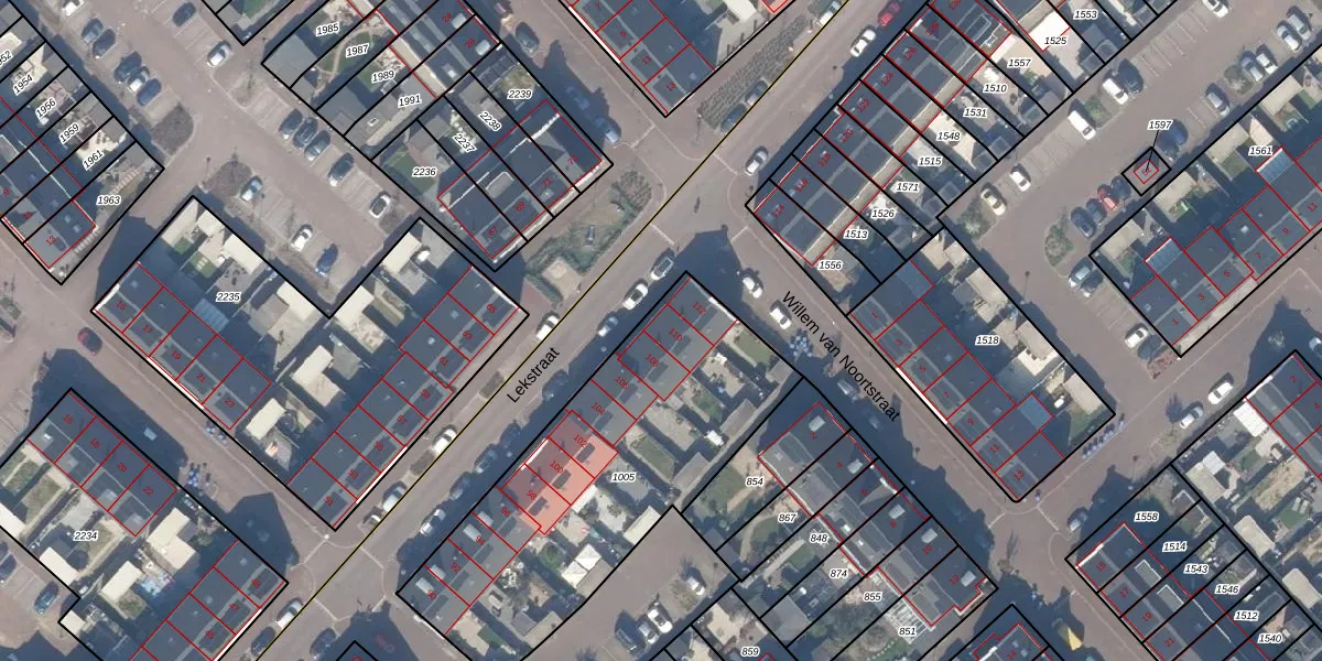Lekstraat 110 is gelegen op kadastraal perceel VAN00F1005. Deze kadastrale aanduiding is uniek en wordt gebruikt door het Kadaster om eigendomsrechten en andere zakelijke rechten vast te leggen. Het perceel maakt onderdeel uit van de kadastrale gemeente Vianen.