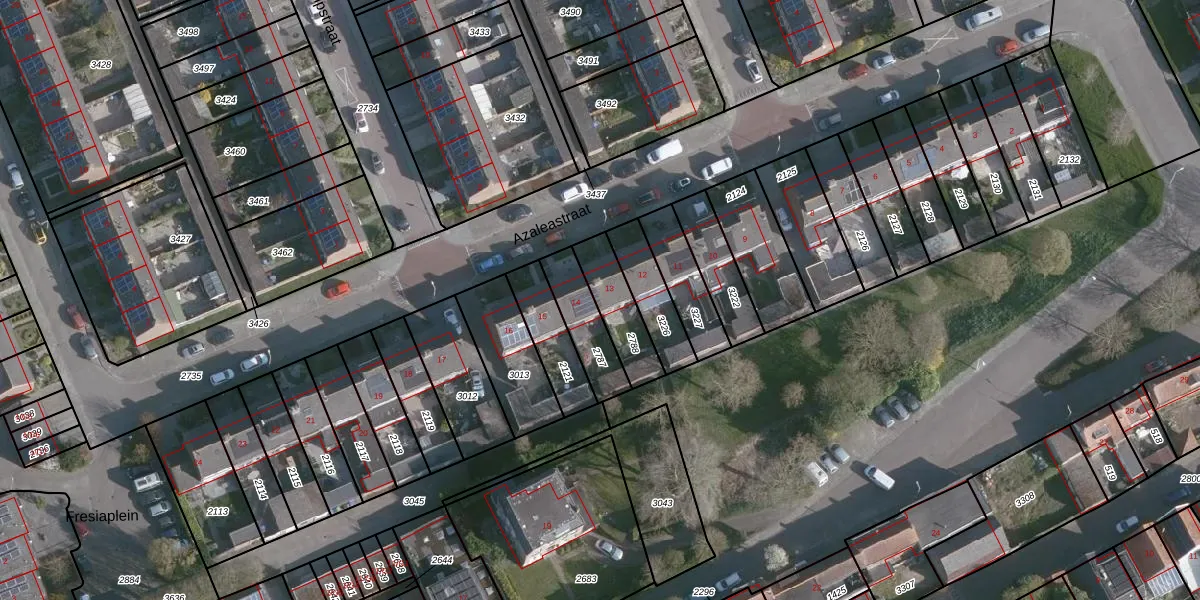 Het perceel waarop Azaleastraat 13 staat heeft een oppervlakte van 156 m². Dit is een middelgroot perceel. De perceeloppervlakte wordt geregistreerd door het Kadaster. Gedetailleerde informatie over de maten van dit perceel kunt u vinden in het rapport Kadastrale kaart met maatvoering van Azaleastraat 13.
