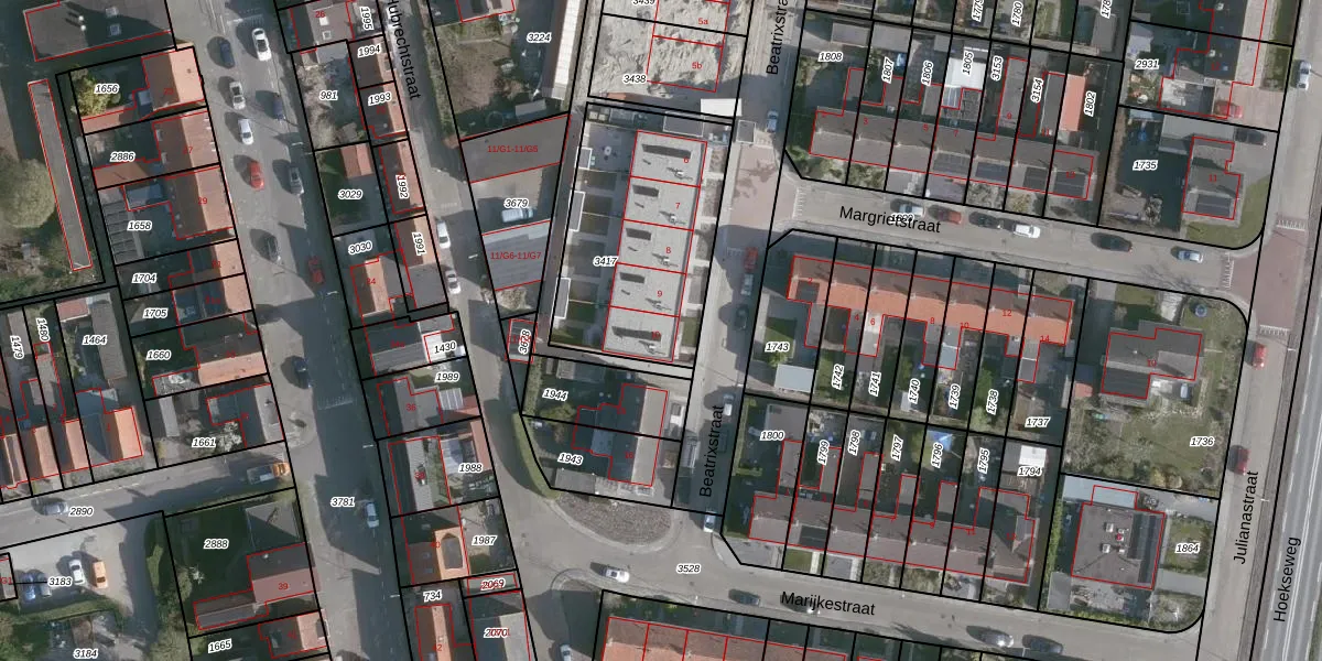 Beatrixstraat 10 is gelegen op kadastraal perceel HOE02I3417. Deze kadastrale aanduiding is uniek en wordt gebruikt door het Kadaster om eigendomsrechten en andere zakelijke rechten vast te leggen. Het perceel maakt onderdeel uit van de kadastrale gemeente Hoek.
