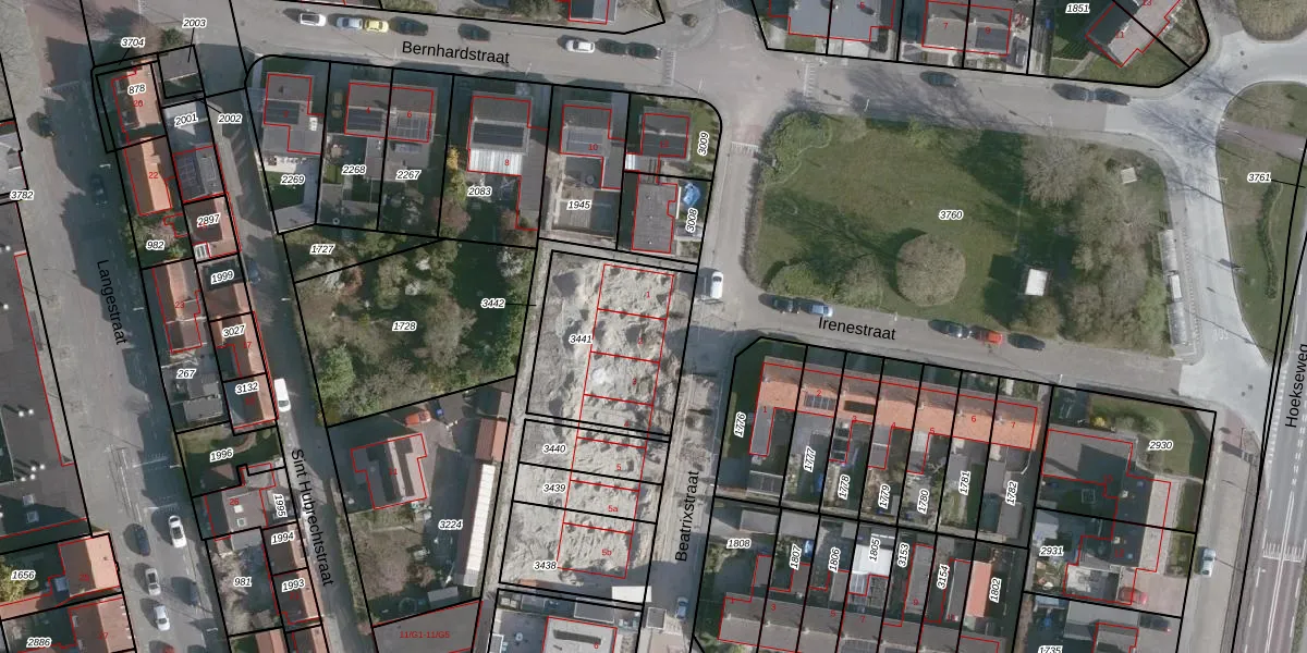 Beatrixstraat 2 is gelegen op kadastraal perceel HOE02I3441. Deze kadastrale aanduiding is uniek en wordt gebruikt door het Kadaster om eigendomsrechten en andere zakelijke rechten vast te leggen. Het perceel maakt onderdeel uit van de kadastrale gemeente Hoek.