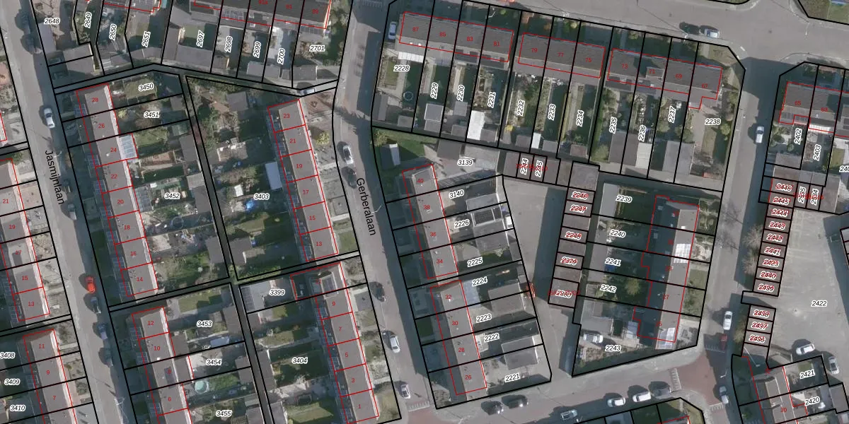 Gerberalaan 38 is gelegen op kadastraal perceel HOE02I3140. Deze kadastrale aanduiding is uniek en wordt gebruikt door het Kadaster om eigendomsrechten en andere zakelijke rechten vast te leggen. Het perceel maakt onderdeel uit van de kadastrale gemeente Hoek.