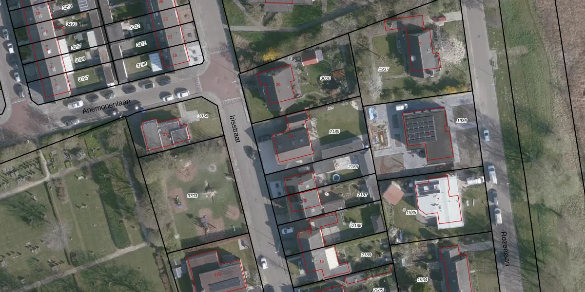 Irisstraat 24 is gelegen op kadastraal perceel HOE02I2185. Deze kadastrale aanduiding is uniek en wordt gebruikt door het Kadaster om eigendomsrechten en andere zakelijke rechten vast te leggen. Het perceel maakt onderdeel uit van de kadastrale gemeente Hoek.
