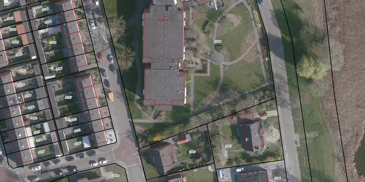 Het perceel waarop Irisstraat 30-003 staat heeft een oppervlakte van 9020 m². Dit is een zeer groot perceel. De perceeloppervlakte wordt geregistreerd door het Kadaster. Gedetailleerde informatie over de maten van dit perceel kunt u vinden in het rapport Kadastrale kaart met maatvoering van Irisstraat 30-003.