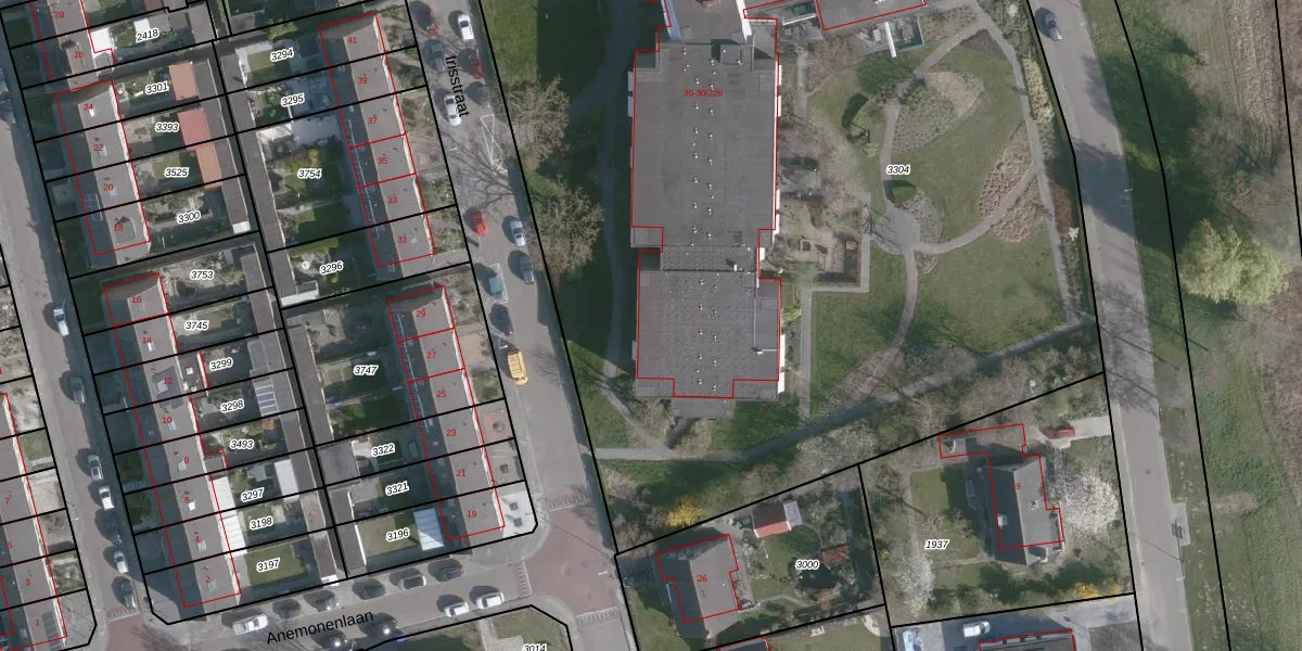 Het perceel waarop Irisstraat 30-006 staat heeft een oppervlakte van 9020 m². Dit is een zeer groot perceel. De perceeloppervlakte wordt geregistreerd door het Kadaster. Gedetailleerde informatie over de maten van dit perceel kunt u vinden in het rapport Kadastrale kaart met maatvoering van Irisstraat 30-006.