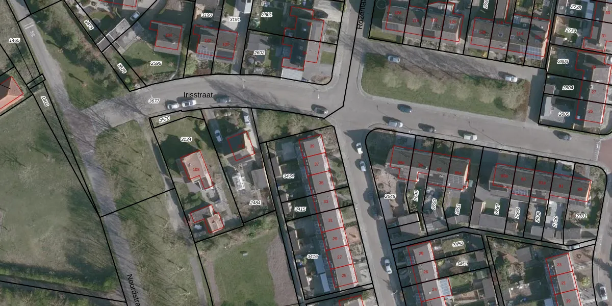 Het perceel waarop Jasmijnlaan 39 staat heeft een oppervlakte van 468 m². Dit is een groot perceel. De perceeloppervlakte wordt geregistreerd door het Kadaster. Gedetailleerde informatie over de maten van dit perceel kunt u vinden in het rapport Kadastrale kaart met maatvoering van Jasmijnlaan 39.