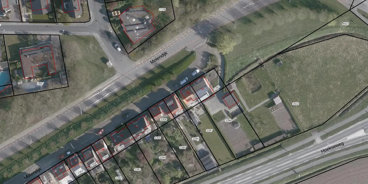 Molendijk 52-a is gelegen op kadastraal perceel HOE02I2360. Deze kadastrale aanduiding is uniek en wordt gebruikt door het Kadaster om eigendomsrechten en andere zakelijke rechten vast te leggen. Het perceel maakt onderdeel uit van de kadastrale gemeente Hoek.