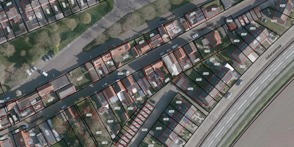 Tramstraat 14 is gelegen op kadastraal perceel HOE02I1510. Deze kadastrale aanduiding is uniek en wordt gebruikt door het Kadaster om eigendomsrechten en andere zakelijke rechten vast te leggen. Het perceel maakt onderdeel uit van de kadastrale gemeente Hoek.