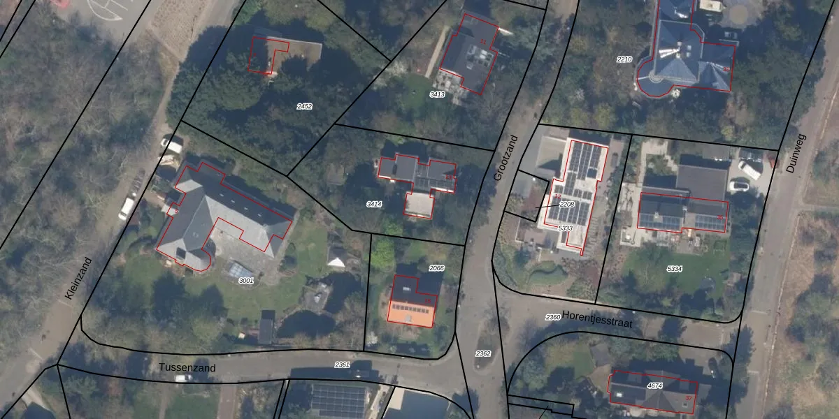 Het perceel waarop Grootzand 13 staat heeft een oppervlakte van 960 m². Dit is een groot perceel. De perceeloppervlakte wordt geregistreerd door het Kadaster. Gedetailleerde informatie over de maten van dit perceel kunt u vinden in het rapport Kadastrale kaart met maatvoering van Grootzand 13.