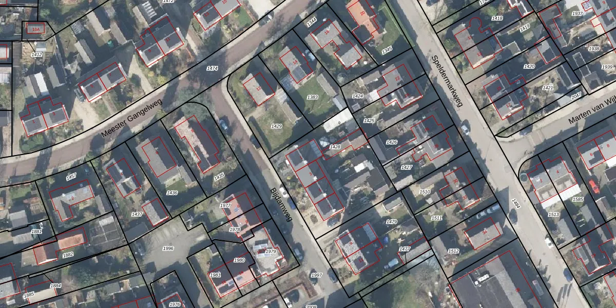 Het perceel waarop Bijdamweg 1 staat heeft een oppervlakte van 945 m². Dit is een groot perceel. De perceeloppervlakte wordt geregistreerd door het Kadaster. Gedetailleerde informatie over de maten van dit perceel kunt u vinden in het rapport Kadastrale kaart met maatvoering van Bijdamweg 1.