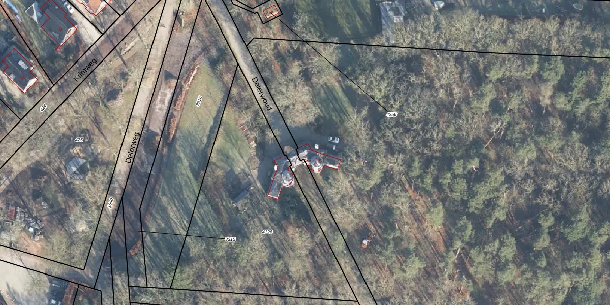 Het perceel waarop Delerwoud 1 staat heeft een oppervlakte van 4,5 ha. Dit is een zeer groot perceel. De perceeloppervlakte wordt geregistreerd door het Kadaster. Gedetailleerde informatie over de maten van dit perceel kunt u vinden in het rapport Kadastrale kaart met maatvoering van Delerwoud 1.