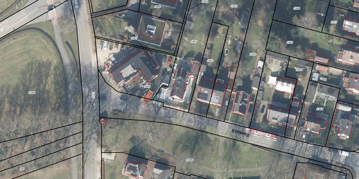 Krimweg 1 is gelegen op kadastraal perceel BBG01G1857. Deze kadastrale aanduiding is uniek en wordt gebruikt door het Kadaster om eigendomsrechten en andere zakelijke rechten vast te leggen. Het perceel maakt onderdeel uit van de kadastrale gemeente Beekbergen.