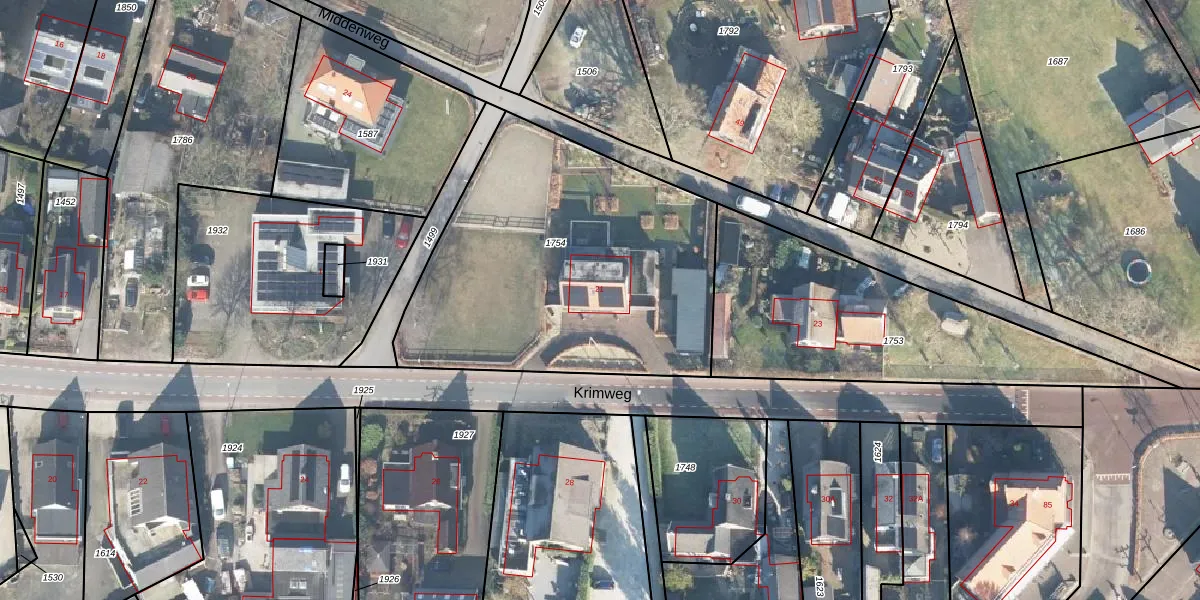 Krimweg 21 is gelegen op kadastraal perceel BBG01G1754. Deze kadastrale aanduiding is uniek en wordt gebruikt door het Kadaster om eigendomsrechten en andere zakelijke rechten vast te leggen. Het perceel maakt onderdeel uit van de kadastrale gemeente Beekbergen.