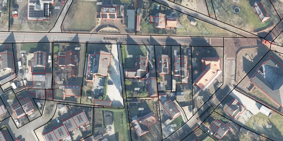 Het perceel waarop Krimweg 30 staat heeft een oppervlakte van 425 m². Dit is een groot perceel. De perceeloppervlakte wordt geregistreerd door het Kadaster. Gedetailleerde informatie over de maten van dit perceel kunt u vinden in het rapport Kadastrale kaart met maatvoering van Krimweg 30.