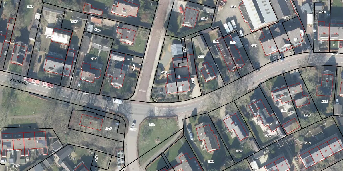 Krimweg 9 is gelegen op kadastraal perceel BBG01G1869. Deze kadastrale aanduiding is uniek en wordt gebruikt door het Kadaster om eigendomsrechten en andere zakelijke rechten vast te leggen. Het perceel maakt onderdeel uit van de kadastrale gemeente Beekbergen.