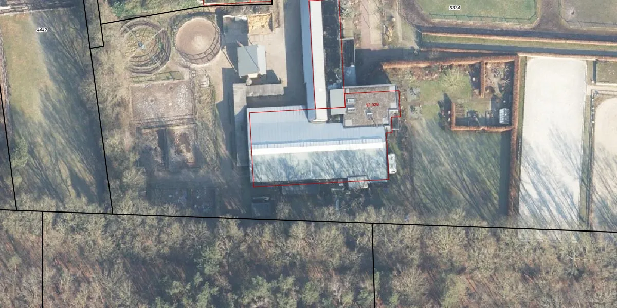 Het perceel waarop Krimweg 92 staat heeft een oppervlakte van 2,8 ha. Dit is een zeer groot perceel. De perceeloppervlakte wordt geregistreerd door het Kadaster. Gedetailleerde informatie over de maten van dit perceel kunt u vinden in het rapport Kadastrale kaart met maatvoering van Krimweg 92.