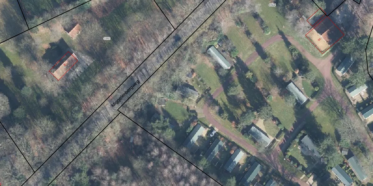 Het perceel waarop Miggelenbergweg 50-7 staat heeft een oppervlakte van 1,6 ha. Dit is een zeer groot perceel. De perceeloppervlakte wordt geregistreerd door het Kadaster. Gedetailleerde informatie over de maten van dit perceel kunt u vinden in het rapport Kadastrale kaart met maatvoering van Miggelenbergweg 50-7.