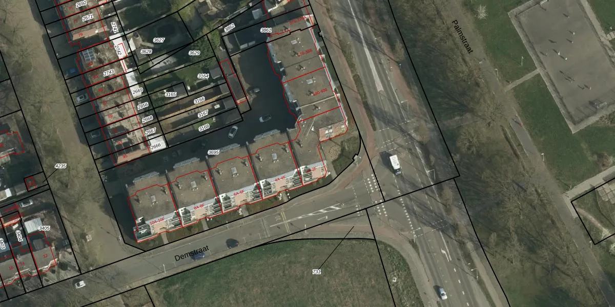 Het perceel waarop Demstraat 2-E staat heeft een oppervlakte van 3075 m². Dit is een zeer groot perceel. De perceeloppervlakte wordt geregistreerd door het Kadaster. Gedetailleerde informatie over de maten van dit perceel kunt u vinden in het rapport Kadastrale kaart met maatvoering van Demstraat 2-E.