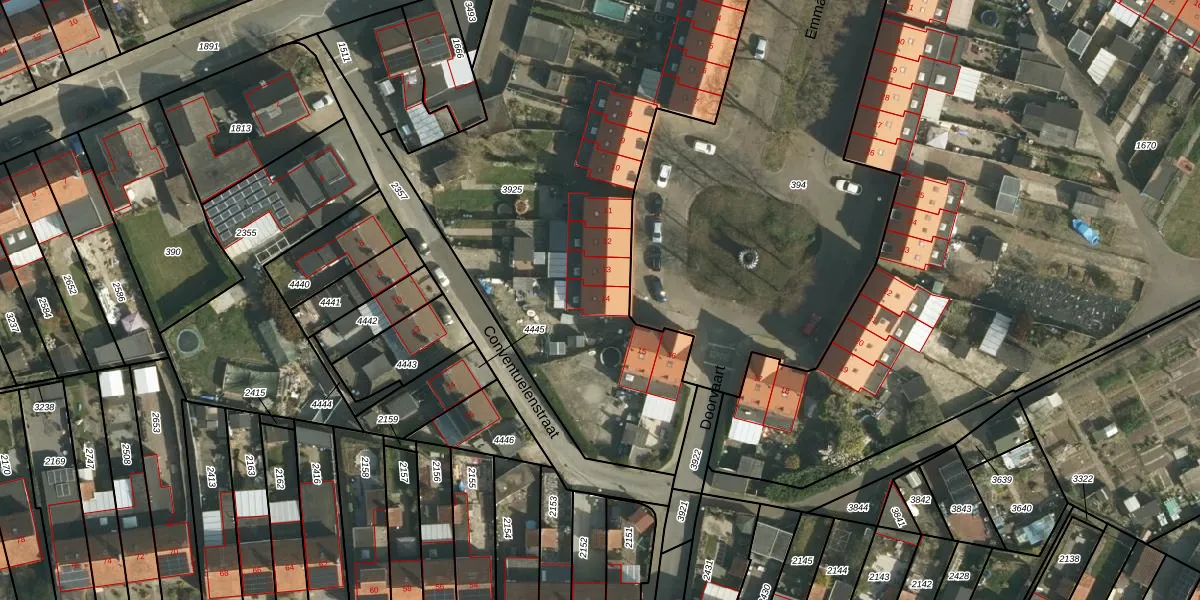 Het perceel waarop Emmaplein 14 staat heeft een oppervlakte van 2785 m². Dit is een zeer groot perceel. De perceeloppervlakte wordt geregistreerd door het Kadaster. Gedetailleerde informatie over de maten van dit perceel kunt u vinden in het rapport Kadastrale kaart met maatvoering van Emmaplein 14.