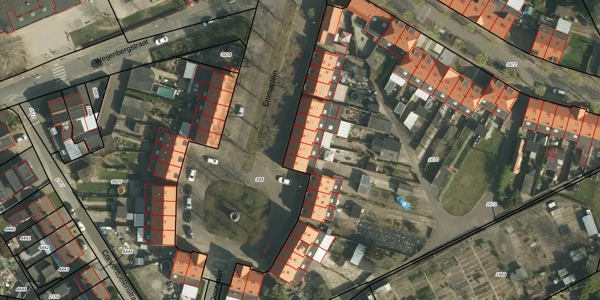 Het perceel waarop Emmaplein 27 staat heeft een oppervlakte van 6945 m². Dit is een zeer groot perceel. De perceeloppervlakte wordt geregistreerd door het Kadaster. Gedetailleerde informatie over de maten van dit perceel kunt u vinden in het rapport Kadastrale kaart met maatvoering van Emmaplein 27.
