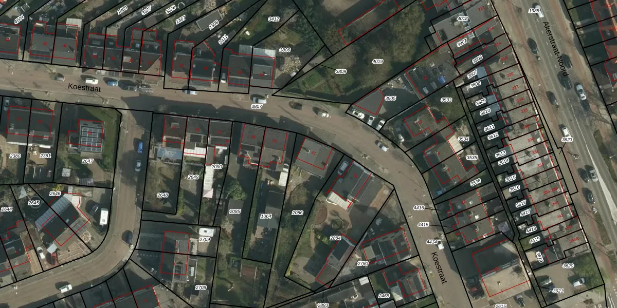 Het perceel waarop Koestraat 21 staat heeft een oppervlakte van 543 m². Dit is een groot perceel. De perceeloppervlakte wordt geregistreerd door het Kadaster. Gedetailleerde informatie over de maten van dit perceel kunt u vinden in het rapport Kadastrale kaart met maatvoering van Koestraat 21.