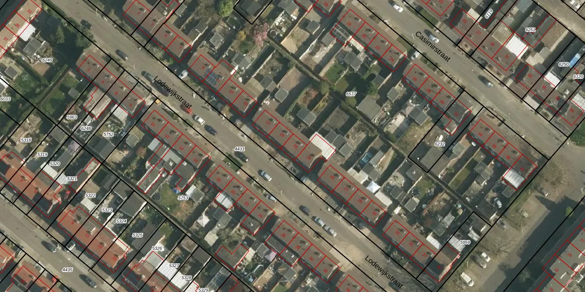 Lodewijkstraat 21 is gelegen op kadastraal perceel HBK00C6577. Deze kadastrale aanduiding is uniek en wordt gebruikt door het Kadaster om eigendomsrechten en andere zakelijke rechten vast te leggen. Het perceel maakt onderdeel uit van de kadastrale gemeente Hoensbroek.
