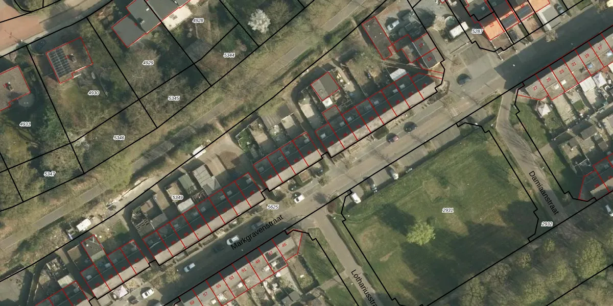 Markgravenstraat 40 is gelegen op kadastraal perceel HBK00A5349. Deze kadastrale aanduiding is uniek en wordt gebruikt door het Kadaster om eigendomsrechten en andere zakelijke rechten vast te leggen. Het perceel maakt onderdeel uit van de kadastrale gemeente Hoensbroek.