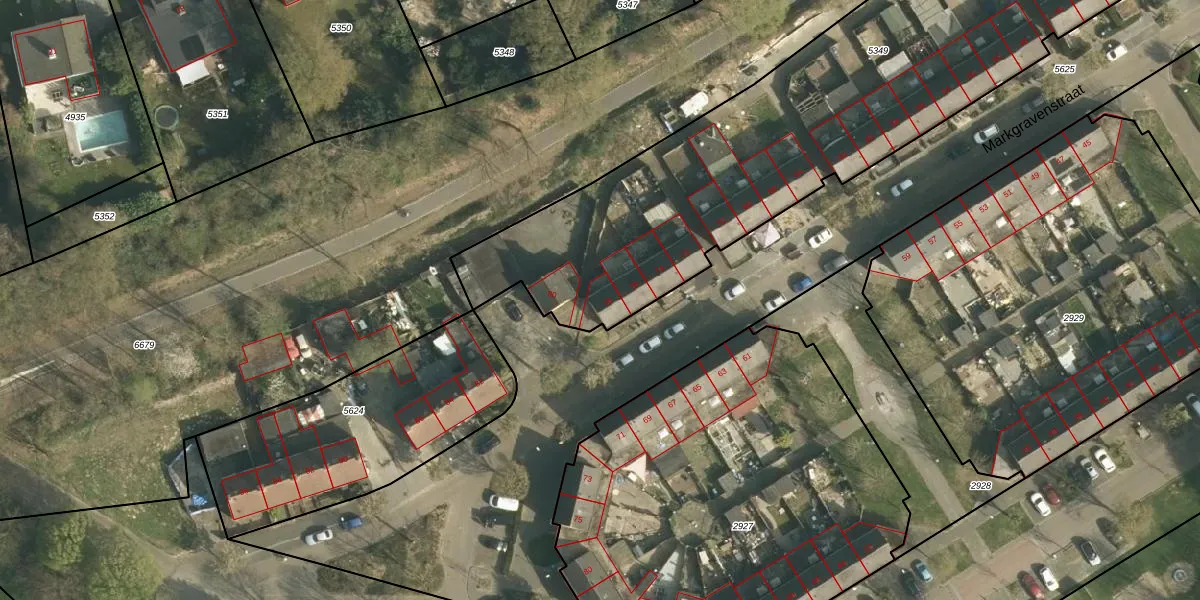 Het perceel waarop Markgravenstraat 78 staat heeft een oppervlakte van 4285 m². Dit is een zeer groot perceel. De perceeloppervlakte wordt geregistreerd door het Kadaster. Gedetailleerde informatie over de maten van dit perceel kunt u vinden in het rapport Kadastrale kaart met maatvoering van Markgravenstraat 78.