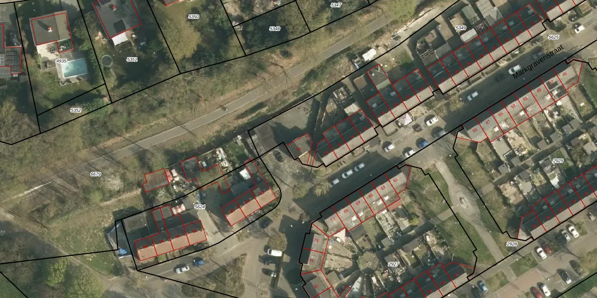 Het perceel waarop Markgravenstraat 80 staat heeft een oppervlakte van 4285 m². Dit is een zeer groot perceel. De perceeloppervlakte wordt geregistreerd door het Kadaster. Gedetailleerde informatie over de maten van dit perceel kunt u vinden in het rapport Kadastrale kaart met maatvoering van Markgravenstraat 80.