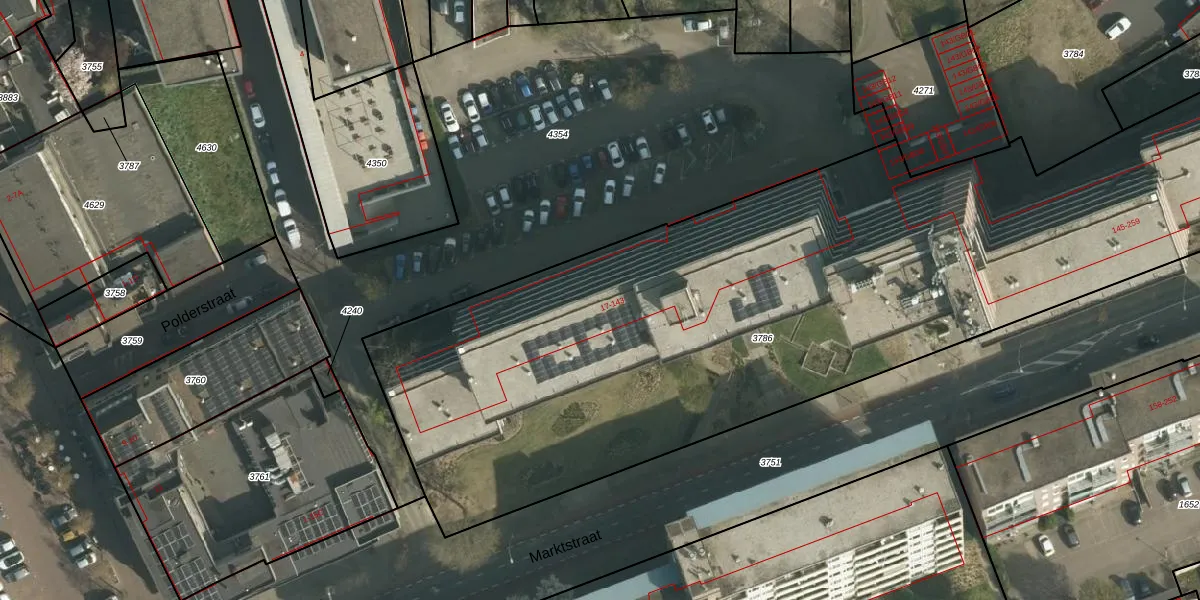 Het perceel waarop Marktstraat 29 staat heeft een oppervlakte van 5070 m². Dit is een zeer groot perceel. De perceeloppervlakte wordt geregistreerd door het Kadaster. Gedetailleerde informatie over de maten van dit perceel kunt u vinden in het rapport Kadastrale kaart met maatvoering van Marktstraat 29.