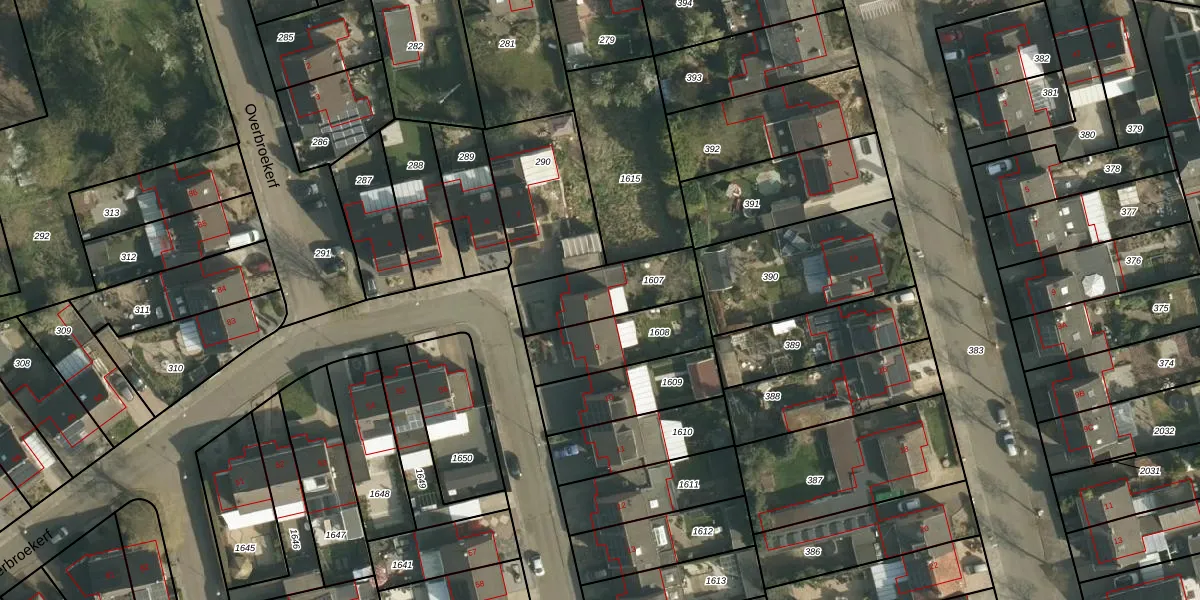 Het perceel waarop Overbroekerf 8 staat heeft een oppervlakte van 262 m². Dit is een middelgroot perceel. De perceeloppervlakte wordt geregistreerd door het Kadaster. Gedetailleerde informatie over de maten van dit perceel kunt u vinden in het rapport Kadastrale kaart met maatvoering van Overbroekerf 8.