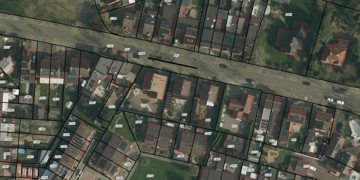 Het perceel waarop Singel 28 staat heeft een oppervlakte van 411 m². Dit is een groot perceel. De perceeloppervlakte wordt geregistreerd door het Kadaster. Gedetailleerde informatie over de maten van dit perceel kunt u vinden in het rapport Kadastrale kaart met maatvoering van Singel 28.