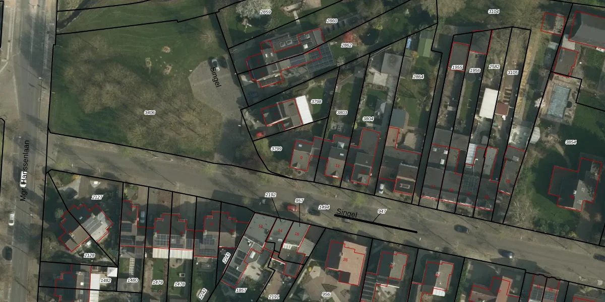 Singel 9 is gelegen op kadastraal perceel HBK00B3799. Deze kadastrale aanduiding is uniek en wordt gebruikt door het Kadaster om eigendomsrechten en andere zakelijke rechten vast te leggen. Het perceel maakt onderdeel uit van de kadastrale gemeente Hoensbroek.