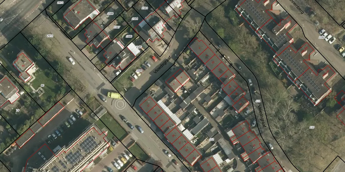 Vloedsgraaf 2 is gelegen op kadastraal perceel HLN01V112. Deze kadastrale aanduiding is uniek en wordt gebruikt door het Kadaster om eigendomsrechten en andere zakelijke rechten vast te leggen. Het perceel maakt onderdeel uit van de kadastrale gemeente Heerlen.