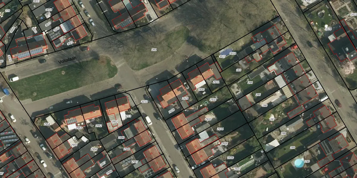Het perceel waarop Voltalaan 64 staat heeft een oppervlakte van 176 m². Dit is een middelgroot perceel. De perceeloppervlakte wordt geregistreerd door het Kadaster. Gedetailleerde informatie over de maten van dit perceel kunt u vinden in het rapport Kadastrale kaart met maatvoering van Voltalaan 64.