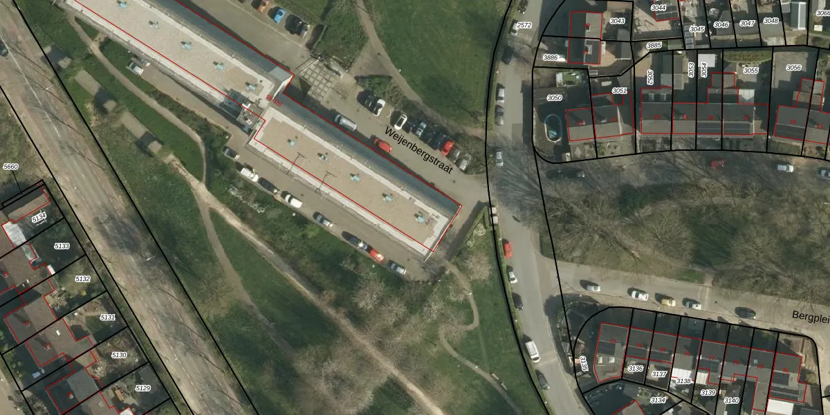 Het perceel waarop Weijenbergstraat 122 staat heeft een oppervlakte van 2,6 ha. Dit is een zeer groot perceel. De perceeloppervlakte wordt geregistreerd door het Kadaster. Gedetailleerde informatie over de maten van dit perceel kunt u vinden in het rapport Kadastrale kaart met maatvoering van Weijenbergstraat 122.