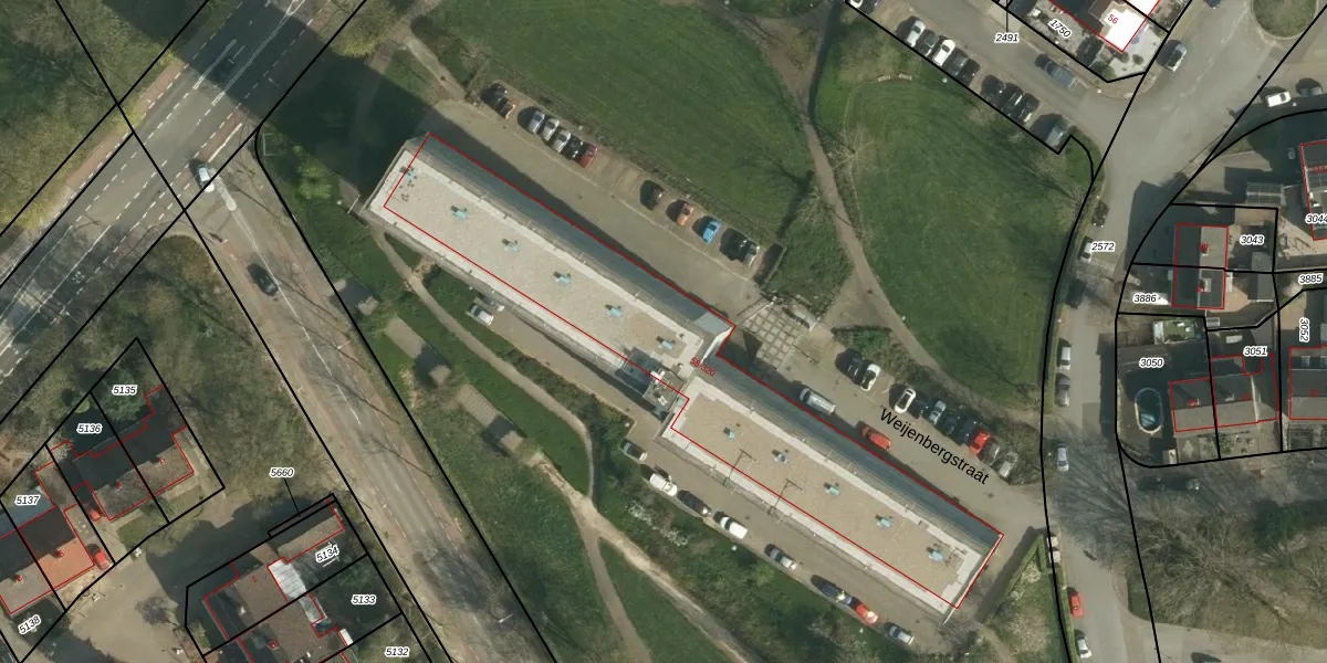 Het perceel waarop Weijenbergstraat 264 staat heeft een oppervlakte van 2,6 ha. Dit is een zeer groot perceel. De perceeloppervlakte wordt geregistreerd door het Kadaster. Gedetailleerde informatie over de maten van dit perceel kunt u vinden in het rapport Kadastrale kaart met maatvoering van Weijenbergstraat 264.