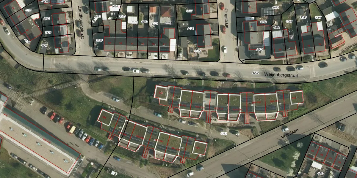 Het perceel waarop Weijenbergstraat 512 staat heeft een oppervlakte van 5200 m². Dit is een zeer groot perceel. De perceeloppervlakte wordt geregistreerd door het Kadaster. Gedetailleerde informatie over de maten van dit perceel kunt u vinden in het rapport Kadastrale kaart met maatvoering van Weijenbergstraat 512.
