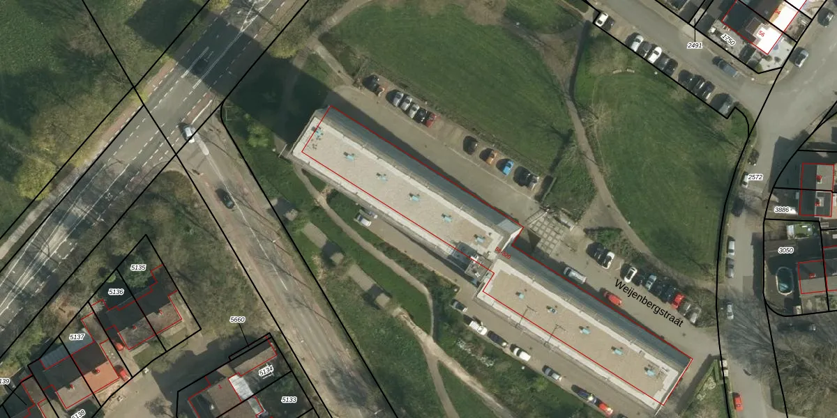 Het perceel waarop Weijenbergstraat 58-GB06 staat heeft een oppervlakte van 2,6 ha. Dit is een zeer groot perceel. De perceeloppervlakte wordt geregistreerd door het Kadaster. Gedetailleerde informatie over de maten van dit perceel kunt u vinden in het rapport Kadastrale kaart met maatvoering van Weijenbergstraat 58-GB06.