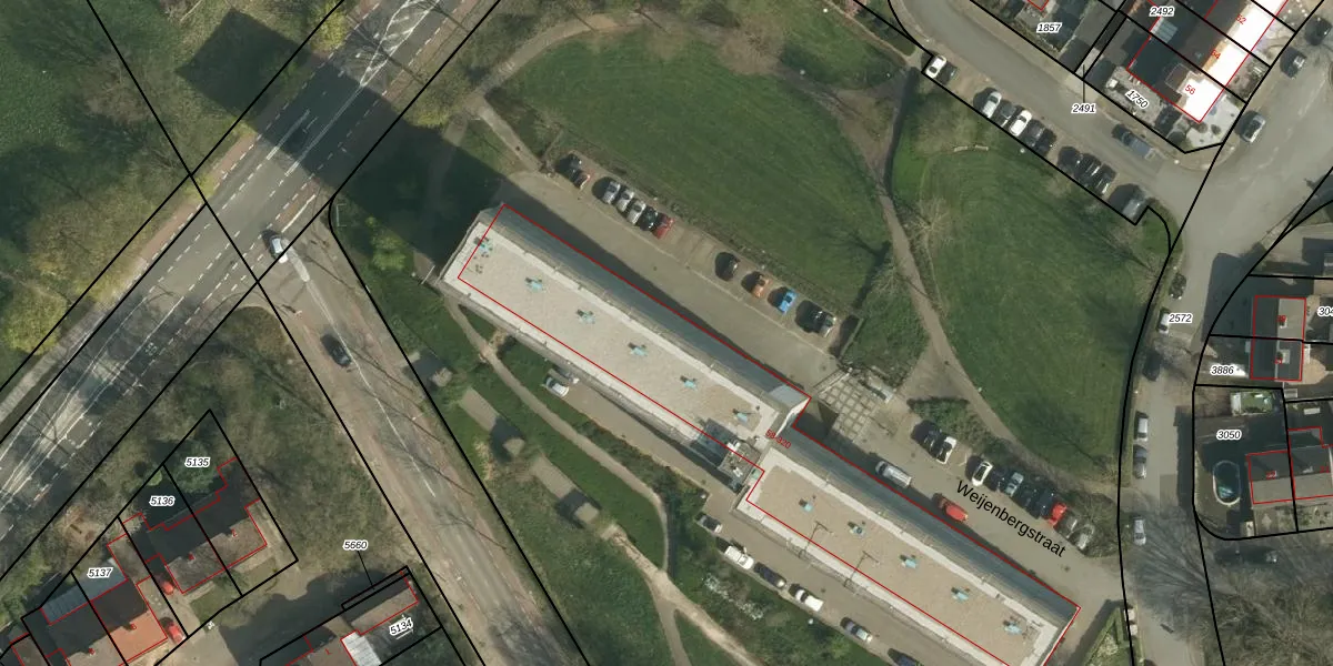 Het perceel waarop Weijenbergstraat 58-GB15 staat heeft een oppervlakte van 2,6 ha. Dit is een zeer groot perceel. De perceeloppervlakte wordt geregistreerd door het Kadaster. Gedetailleerde informatie over de maten van dit perceel kunt u vinden in het rapport Kadastrale kaart met maatvoering van Weijenbergstraat 58-GB15.