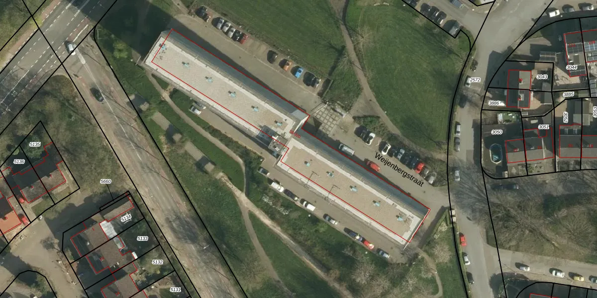 Het perceel waarop Weijenbergstraat 90 staat heeft een oppervlakte van 2,6 ha. Dit is een zeer groot perceel. De perceeloppervlakte wordt geregistreerd door het Kadaster. Gedetailleerde informatie over de maten van dit perceel kunt u vinden in het rapport Kadastrale kaart met maatvoering van Weijenbergstraat 90.