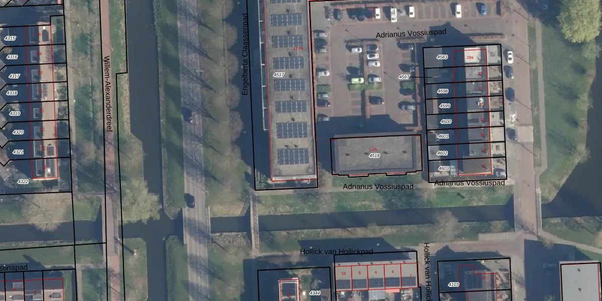Adrianus Vossiuspad 39 is gelegen op kadastraal perceel HVL00C4517. Deze kadastrale aanduiding is uniek en wordt gebruikt door het Kadaster om eigendomsrechten en andere zakelijke rechten vast te leggen. Het perceel maakt onderdeel uit van de kadastrale gemeente Hoevelaken.