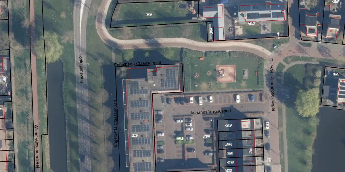 Het adres ligt op het perceel HVL00-C-4517, dat zich in de kadastrale gemeente Hoevelaken bevindt. De oppervlakte van het perceel is 1930 m². Dat is groter dan gemiddeld in Hoevelaken, waar de gemiddelde perceeloppervlakte op 1356,39 m² ligt. Het kleinste perceel in de kadastrale gemeente is 0 m² groot. De grootste perceeloppervlakte is 16,6 ha. Op het perceel zijn 32 adressen aanwezig. De huidige grenzen van het perceel zijn digitaal in de Basisregistratie Kadaster (BRK) geregistreerd op 01-04-2010.