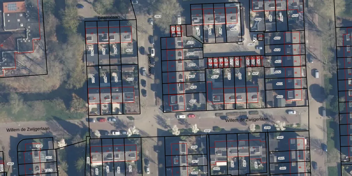 Beatrixlaan 25 is gelegen op kadastraal perceel HVL00C4636. Deze kadastrale aanduiding is uniek en wordt gebruikt door het Kadaster om eigendomsrechten en andere zakelijke rechten vast te leggen. Het perceel maakt onderdeel uit van de kadastrale gemeente Hoevelaken.