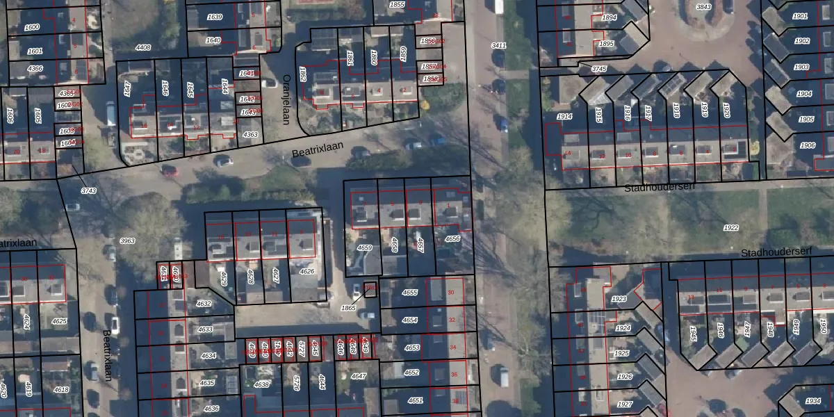 Gebruik de zoekbalk of klik op een perceel voor informatie over de adressen binnen dit perceel.
