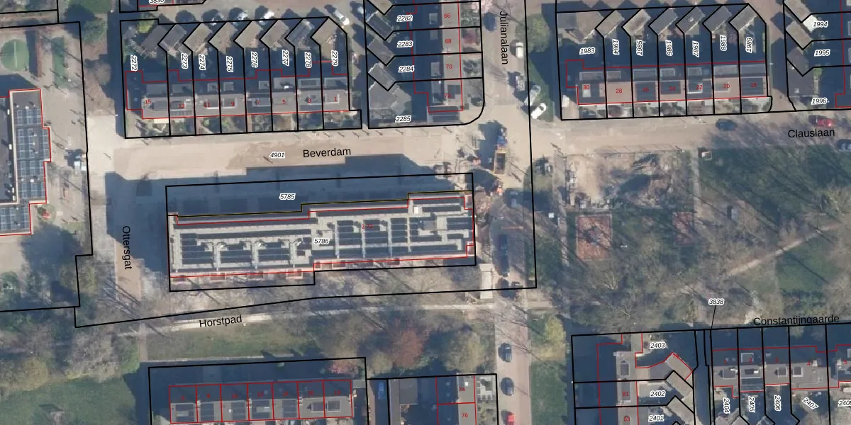 Het adres is gelegen op perceel 5786 in de sectie C en de kadastrale gemeente Hoevelaken. De kadastrale aanduiding is aldus HVL00-C-5786. Het perceel is kleiner dan gemiddeld in Hoevelaken. Het perceel is 1220 m² groot, terwijl het gemiddelde ligt op 1356,39 m². Het grootste perceel in de kadastrale gemeente is 16,6 ha. Het kleinste perceel heeft een oppervlakte van 0 m². Op het perceel liggen in totaal 36 adressen. In de Basisregistratie Kadaster (BRK) werden de grenzen van het perceel geregistreerd op 19-02-2026.