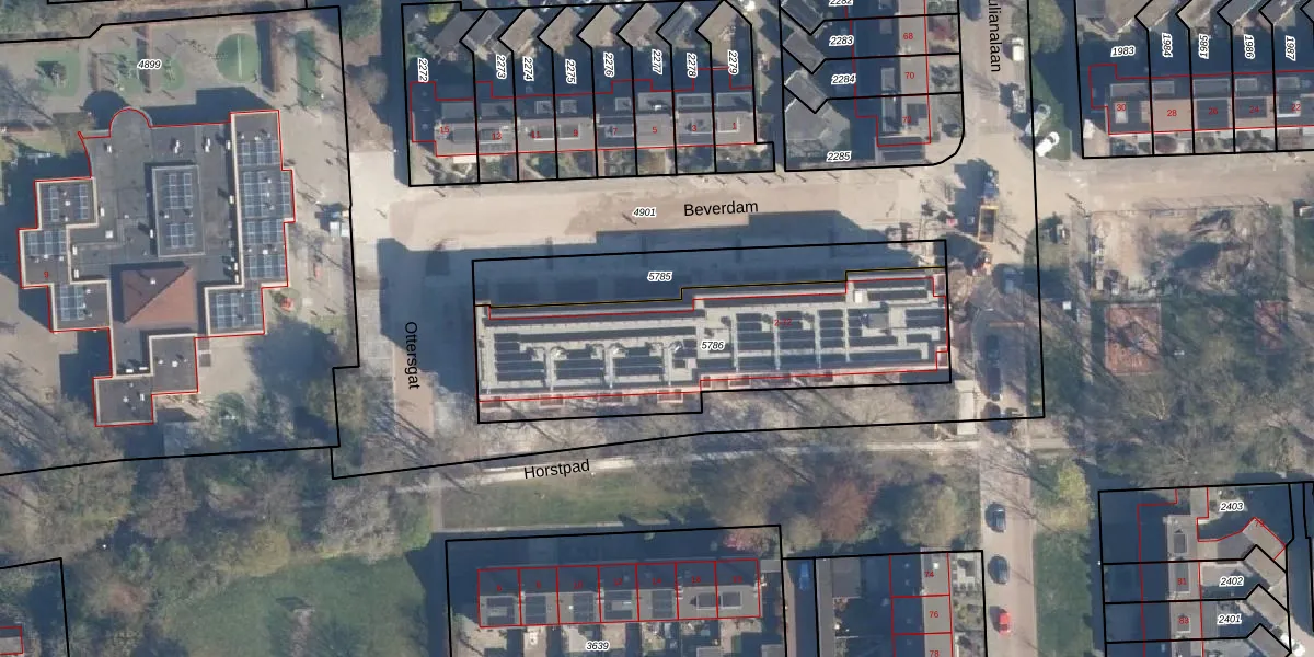 Het perceel waarop Beverdam 36 staat heeft een oppervlakte van 1220 m². Dit is een zeer groot perceel. De perceeloppervlakte wordt geregistreerd door het Kadaster. Gedetailleerde informatie over de maten van dit perceel kunt u vinden in het rapport Kadastrale kaart met maatvoering van Beverdam 36.