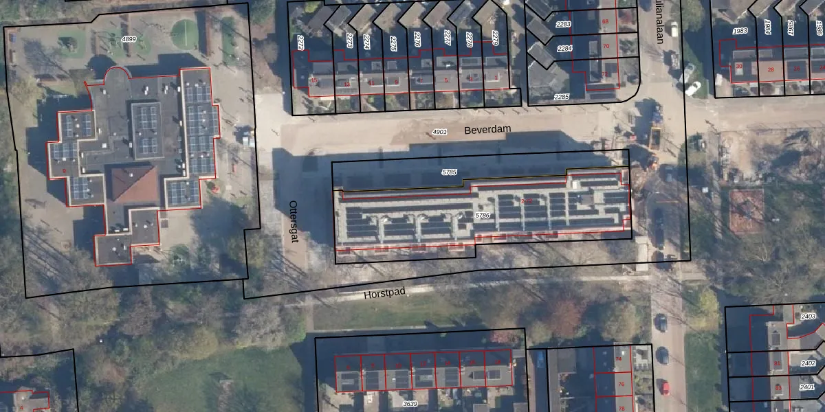 Het perceel waarop Beverdam 40 staat heeft een oppervlakte van 1220 m². Dit is een zeer groot perceel. De perceeloppervlakte wordt geregistreerd door het Kadaster. Gedetailleerde informatie over de maten van dit perceel kunt u vinden in het rapport Kadastrale kaart met maatvoering van Beverdam 40.