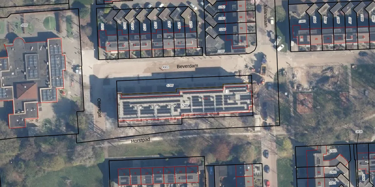 Het adres is gelegen op perceel 5786 in de sectie C en de kadastrale gemeente Hoevelaken. De kadastrale aanduiding is aldus HVL00-C-5786. Het perceel is kleiner dan gemiddeld in Hoevelaken. Het perceel is 1220 m² groot, terwijl het gemiddelde ligt op 1356,39 m². Het grootste perceel in de kadastrale gemeente is 16,6 ha. Het kleinste perceel heeft een oppervlakte van 0 m². Op het perceel zijn 36 adressen aanwezig. De huidige grenzen van het perceel zijn digitaal in de Basisregistratie Kadaster (BRK) geregistreerd op 19-02-2026.