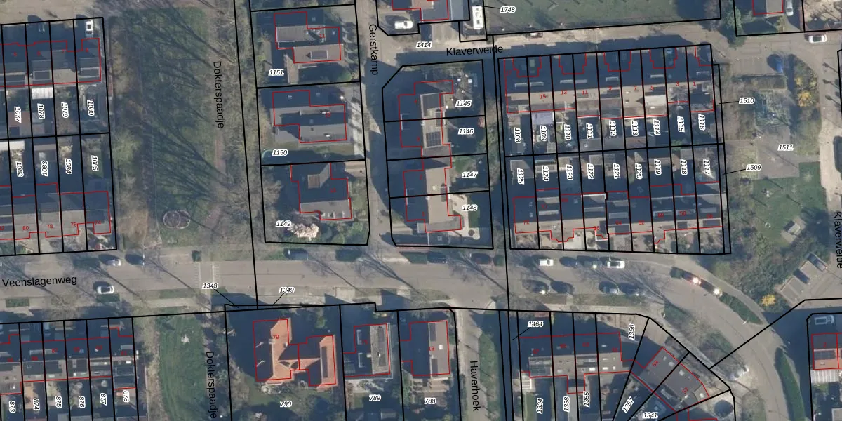 Gebruik de zoekbalk of klik op een perceel voor informatie over de adressen binnen dit perceel.