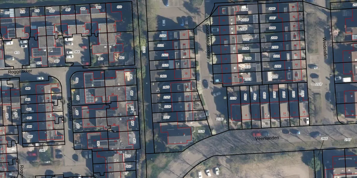 Gebruik de zoekbalk of klik op een perceel voor informatie over de adressen binnen dit perceel.